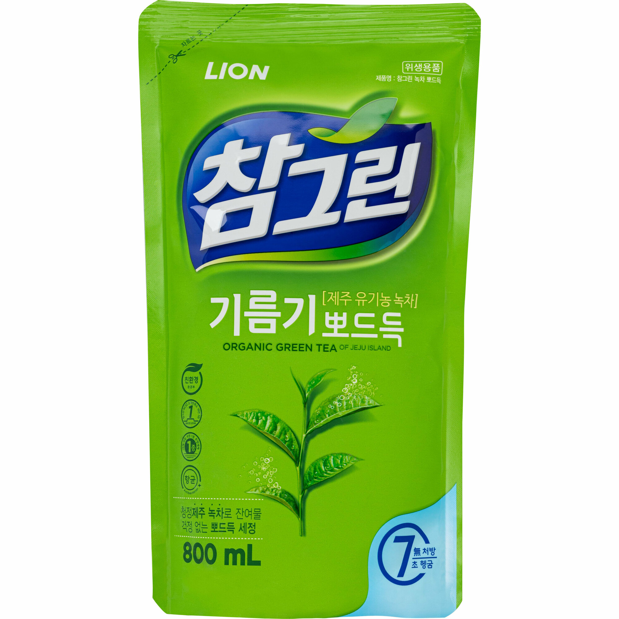 LION Жидкость для мытья посуды Chamgreen Зелёный чай сменный блок, 0.775 л, 0.8 кг