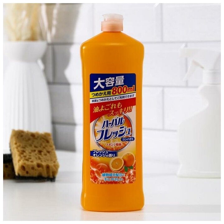 Японское концентрированное средство для мытья посуды, овощей и фруктов, с ароматом апельсина, 800 мл, Mitsuei, Япония