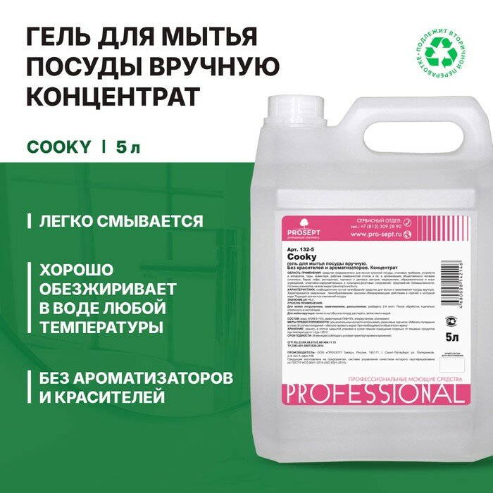 Гель для мытья посуды Cooky, 5 л, (1:100-1:200)