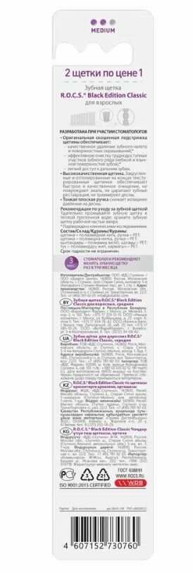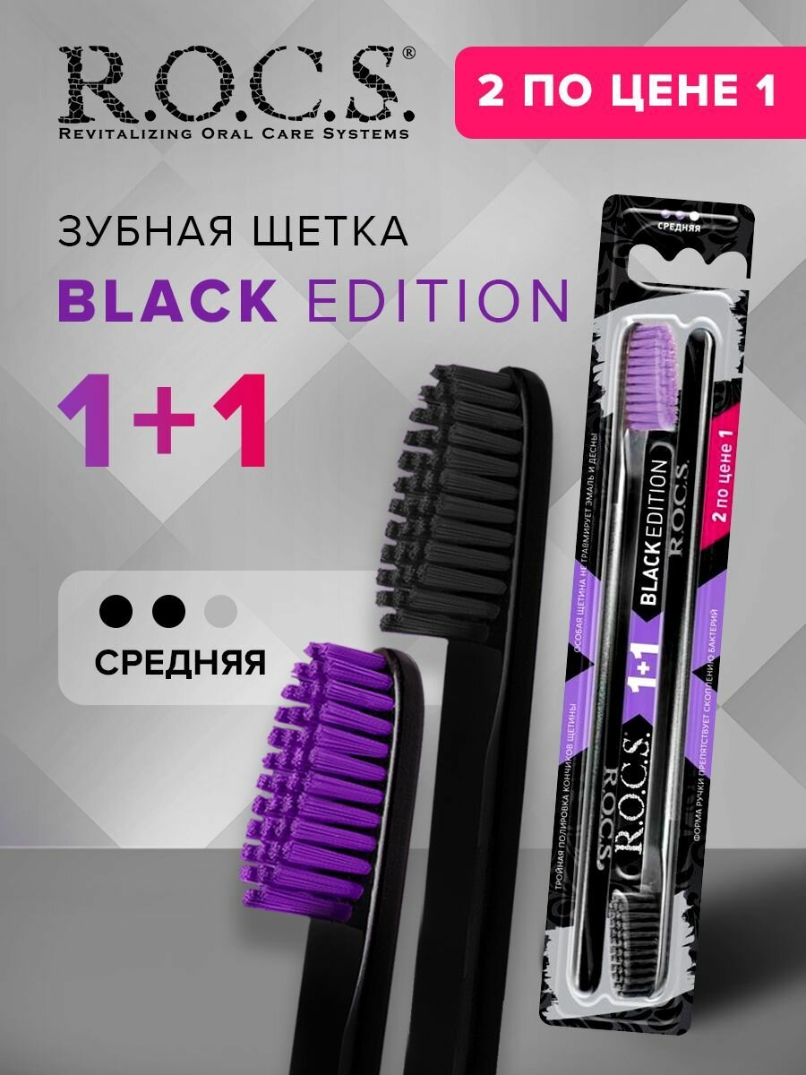 Набор зубных щеток R.O.C.S. Black Edition Средняя (2 шт)