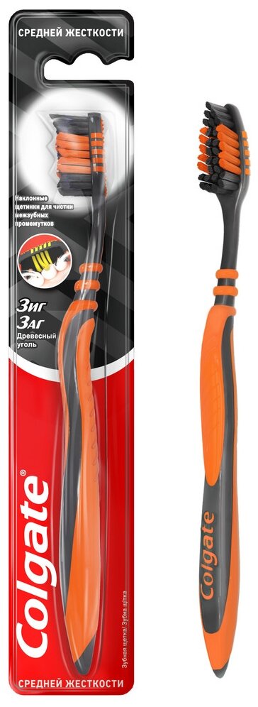 Зубная щетка Colgate ЗИГ-ЗАГ с Древесным углем, средняя