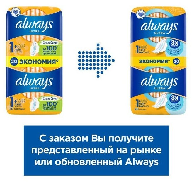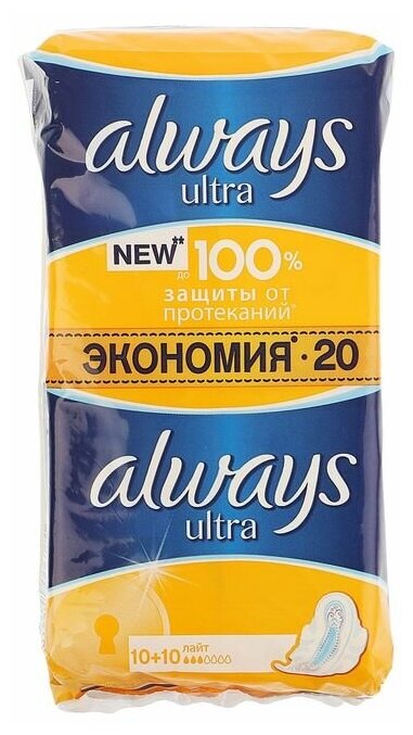 Always Женские гигиенические прокладки с крылышками Ultra Лайт размер 1 20 шт - 1 шт