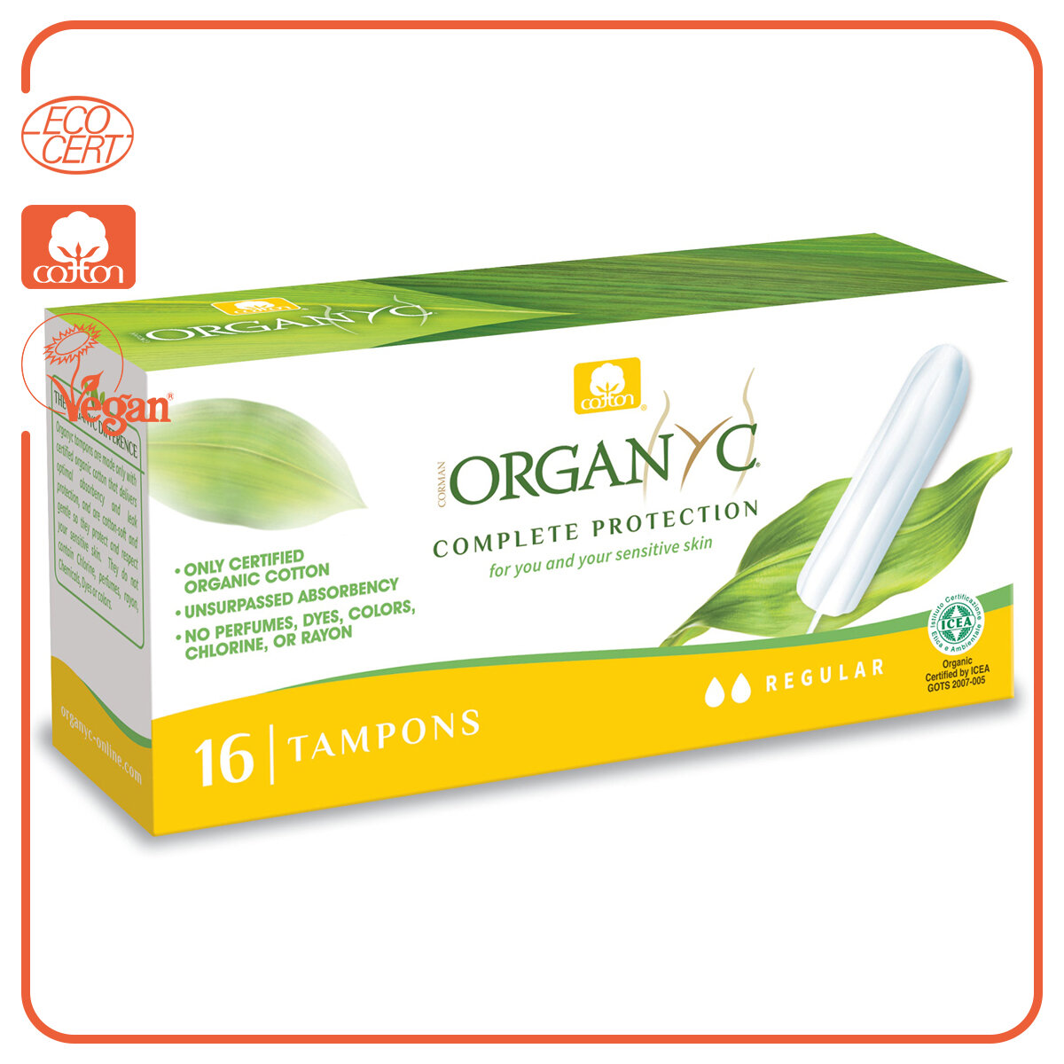Купить Тампоны Регулар, без аппликатора, Organyc 16шт