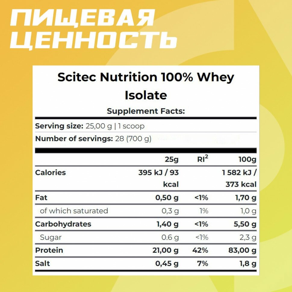 Протеин Scitec Nutrition 100% Whey Isolate, 700 гр., ваниль