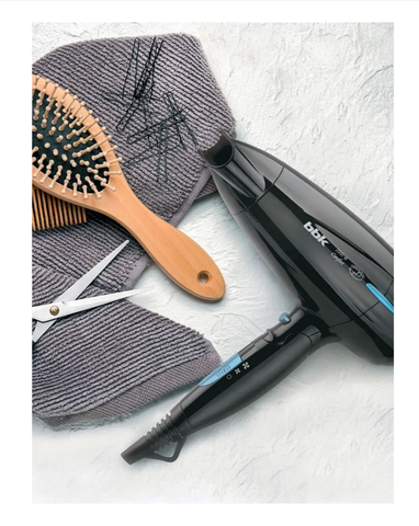 BBK 4897055284587 Фен BBK BHD3201i, черный/голубой /2000 Вт, складной, 2 реж., складной, ионизация, концентратор/