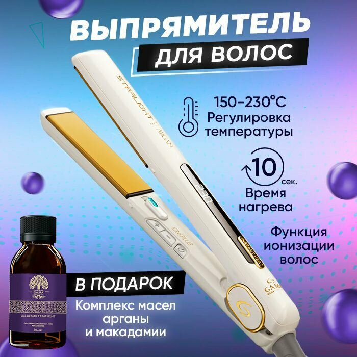Выпрямитель для волос GA.MA Iht Starlight, турмалиновые, цифровые + аргановое масло