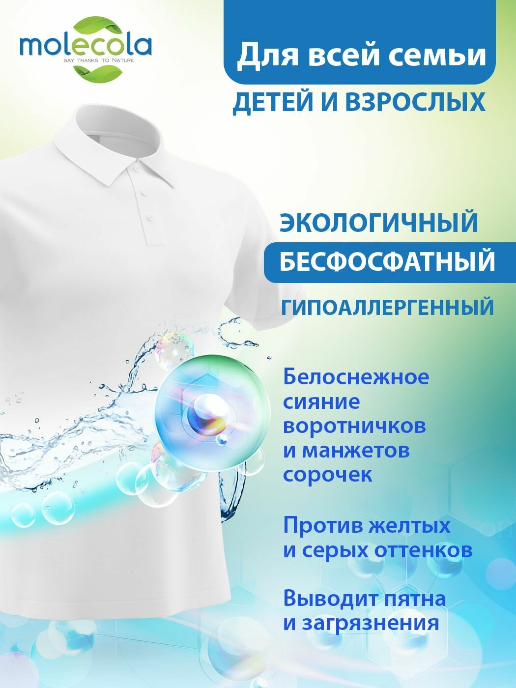 Стиральный порошок MOLECOLA для белого белья с растительными энзимами экологичный 1,2 кг
