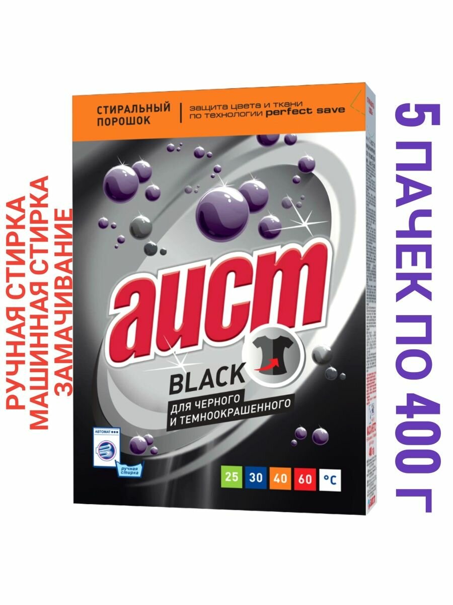 Стиральный порошок Аист Black, 0.4 кг, для черных и темных тканей, для хлопковых тканей