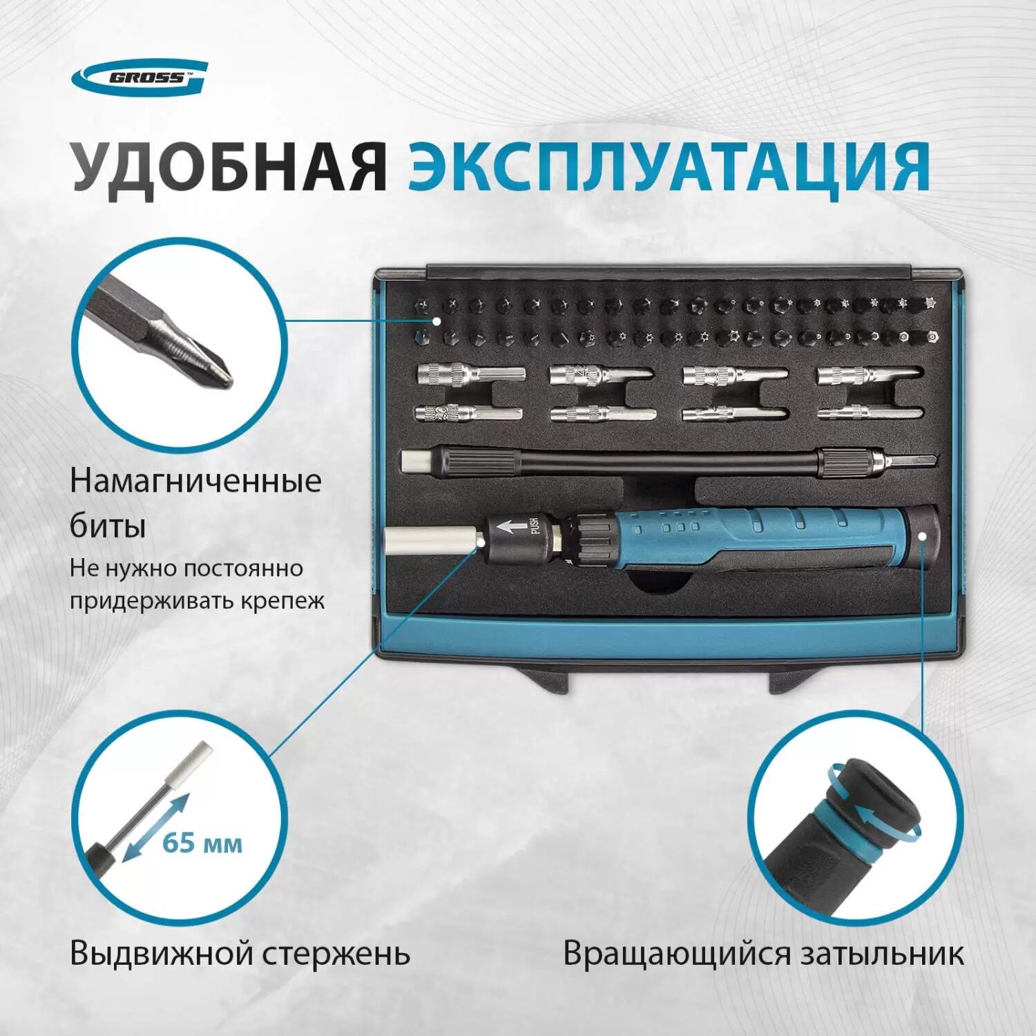 GROSS Отвертка с набором бит и торцевых головок для точных работ, Гибкий привод. 48 штук, CrMo// 11599 интересное: