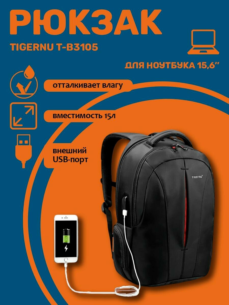 Рюкзак Tigernu T-B3105, черный/оранжевый, 15,6"