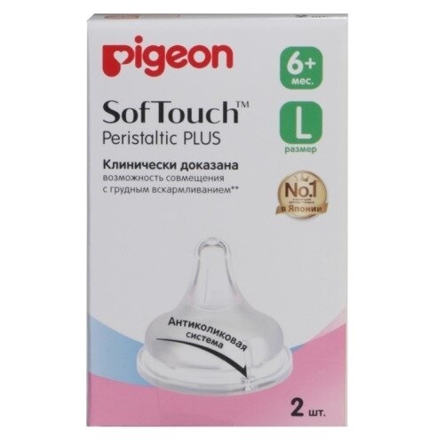 PIGEON Соска для бутылки SofTouchPeristaltic PLUS размер L возраст от 6 мес 2шт
