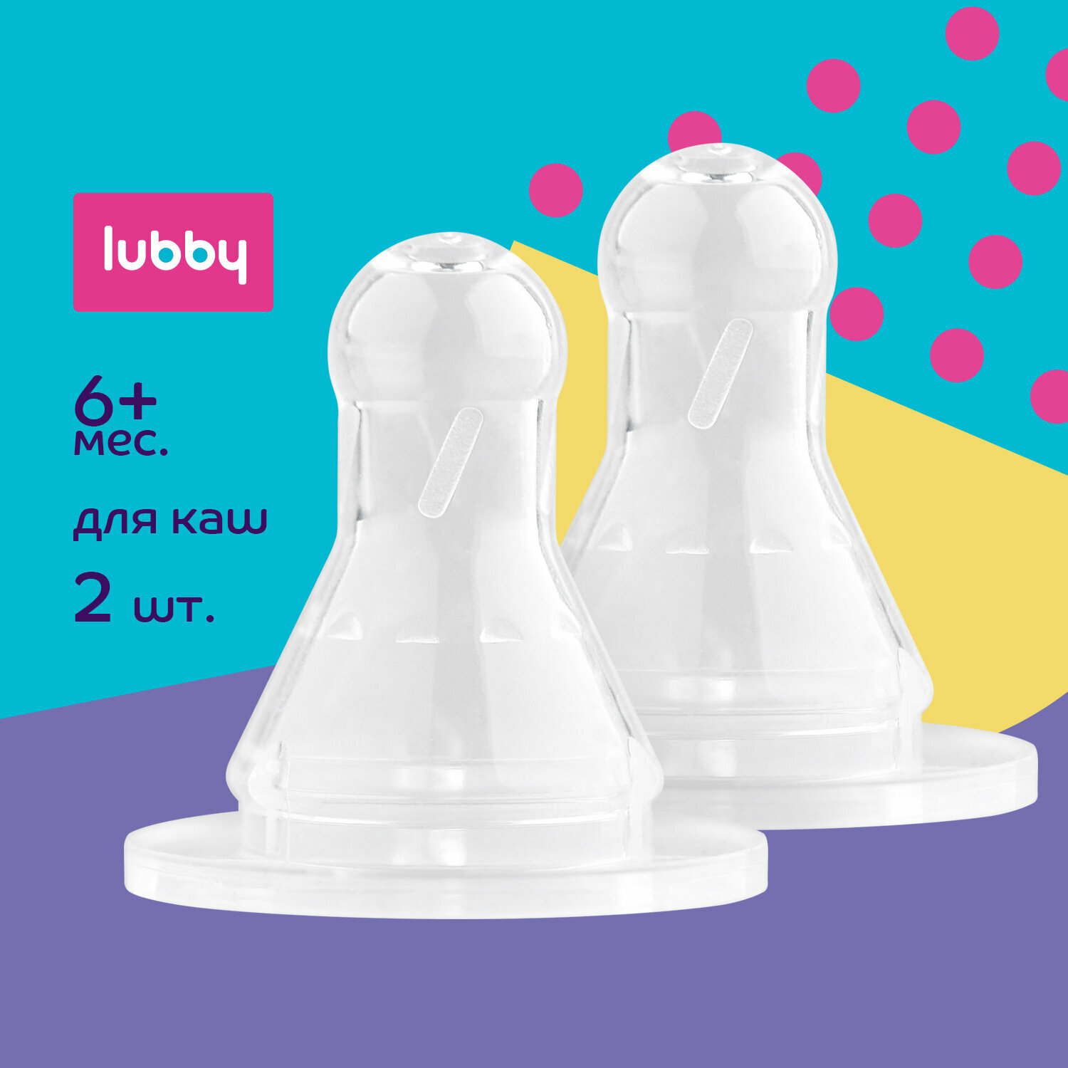 Lubby Соска молочная, 2 шт., для густой жидкости от 6 мес., силикон