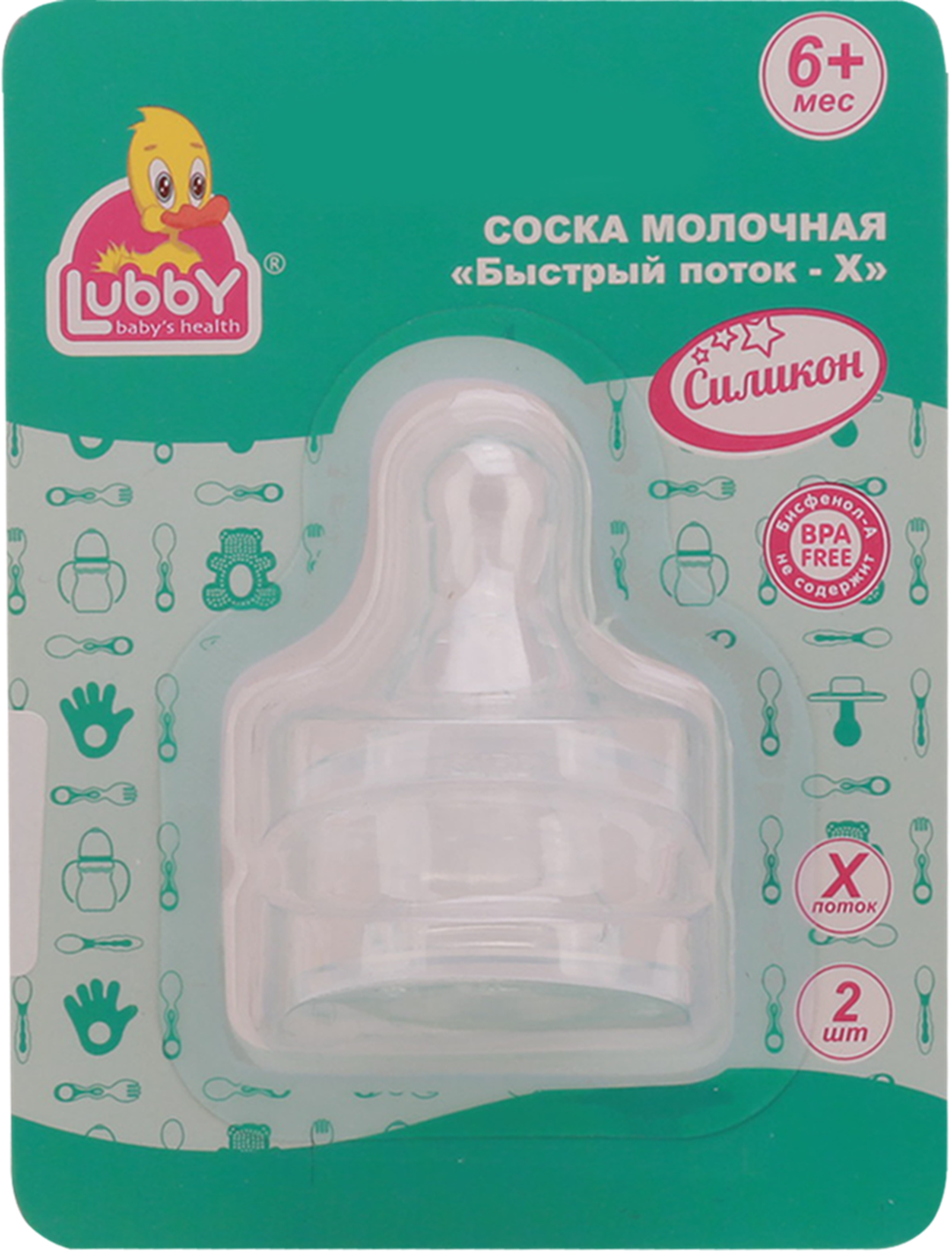 Соска Lubby молочная, силиконовая для густой пищи, р.X 2 шт.
