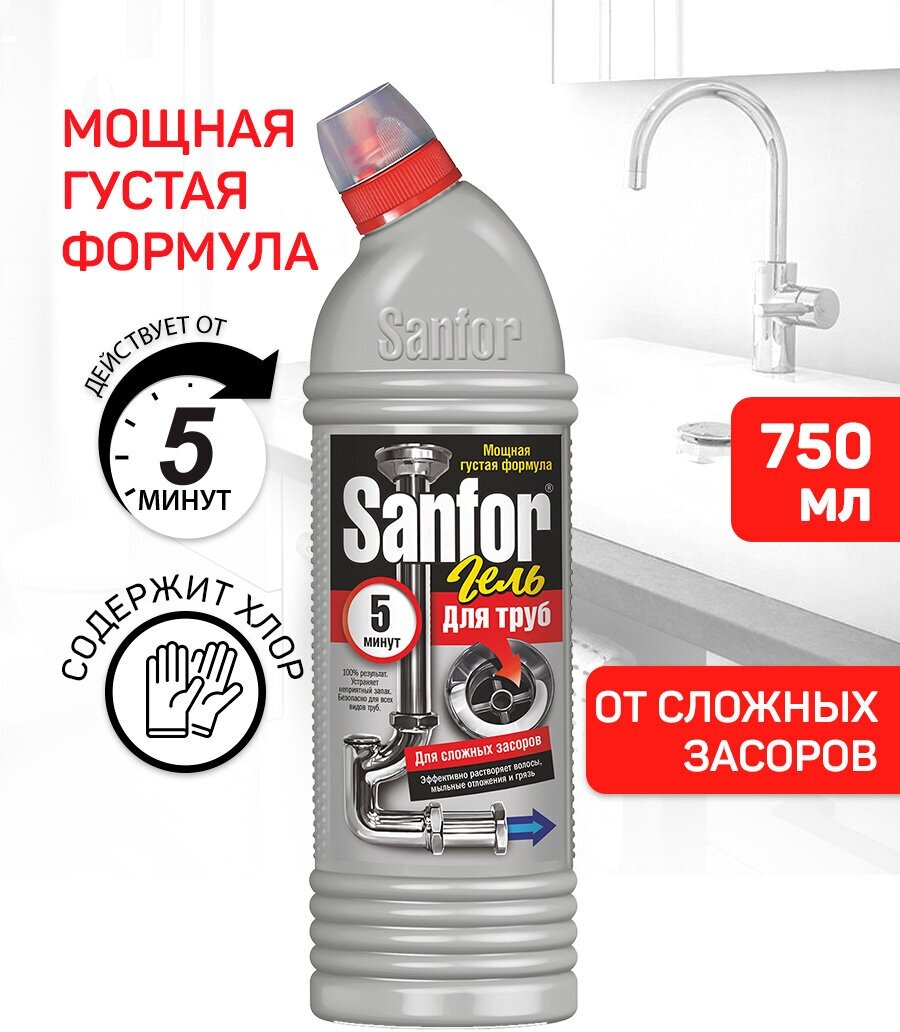 Sanfor гель для труб, для сложных засоров, 5 минут, 0.75 л, 750 г