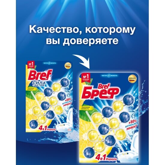 Гигиенический блок для унитаза Bref "Сила-Актив. Лимонная свежесть", 2x50г, блистер (9000100656832)