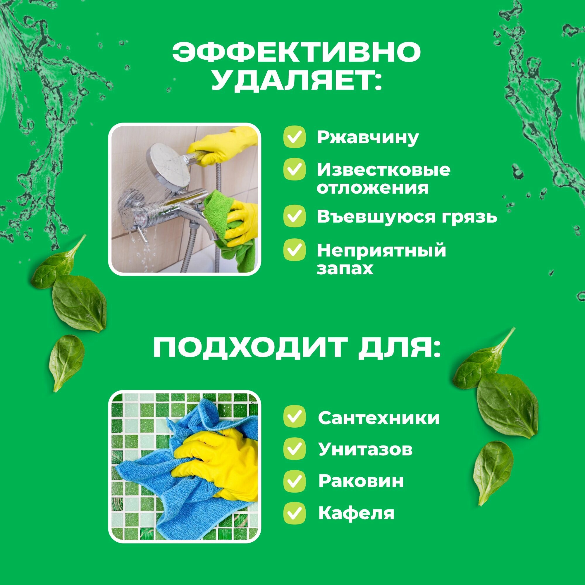 | Плюсы: | Очень хорошо убирает налет с ванной, унитаза. |