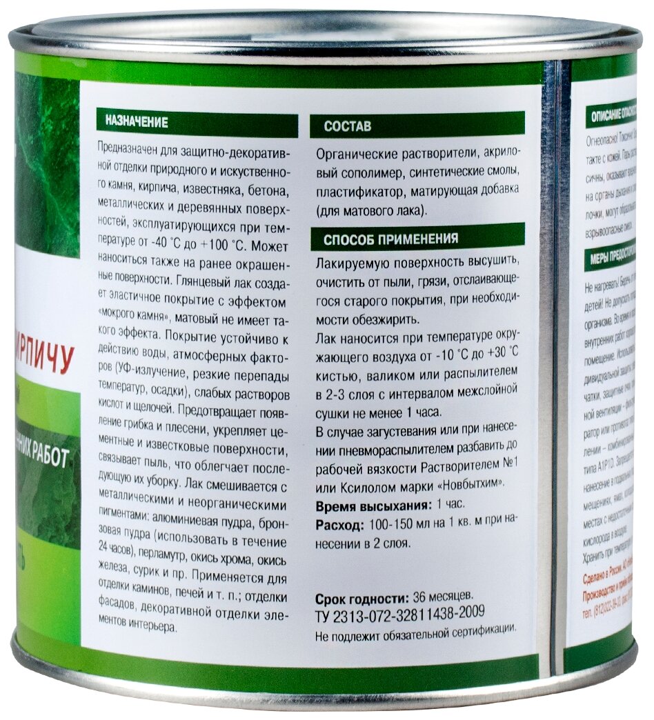 СохранитьЛАК ПО камню И кирпичу матовый 0,75 Л (1/6) "НБХ" главный технолог интересное: