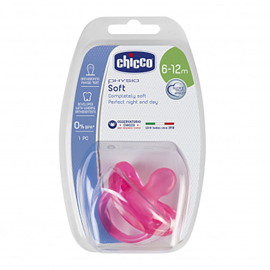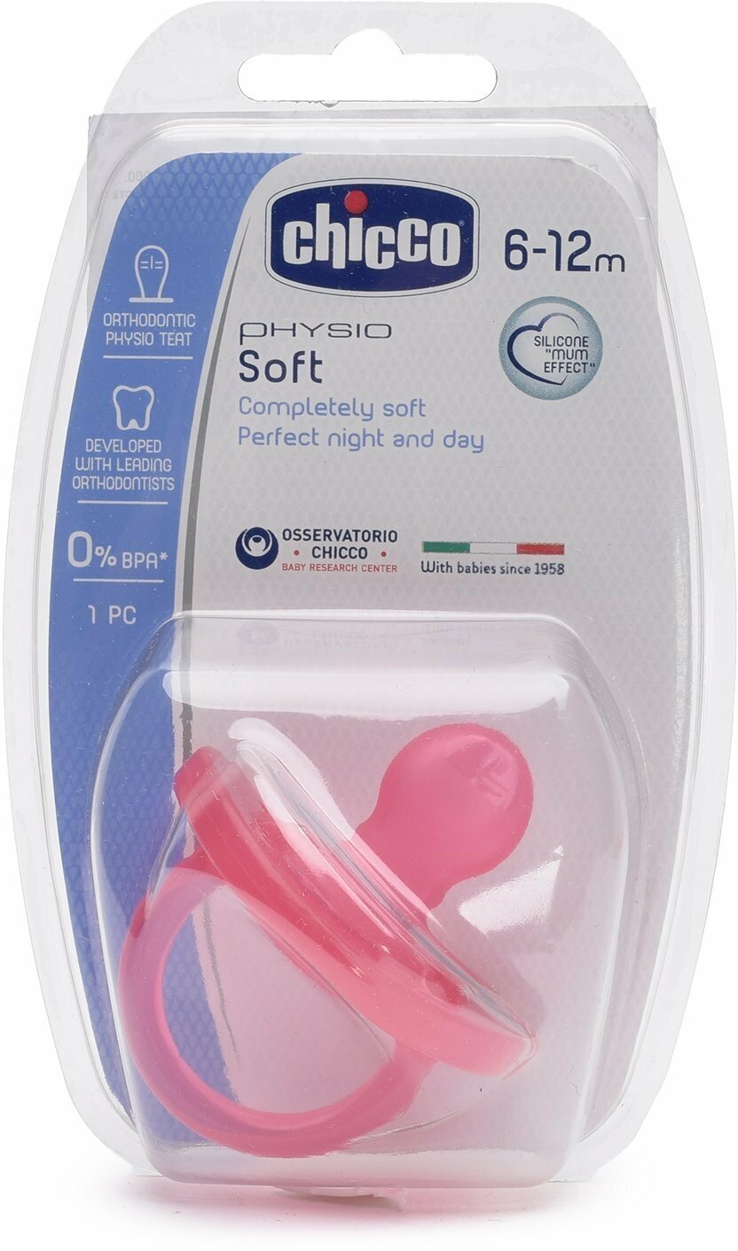 Chicco Пустышка Physio Soft 6-12 мес. силиконовая розовая, 1 шт