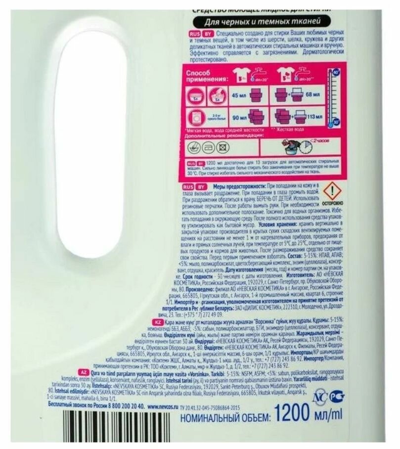 Невская косметика Жидкое средство для стирки "Ворсинка", для тёмной и чёрных тканей, 1.2 л