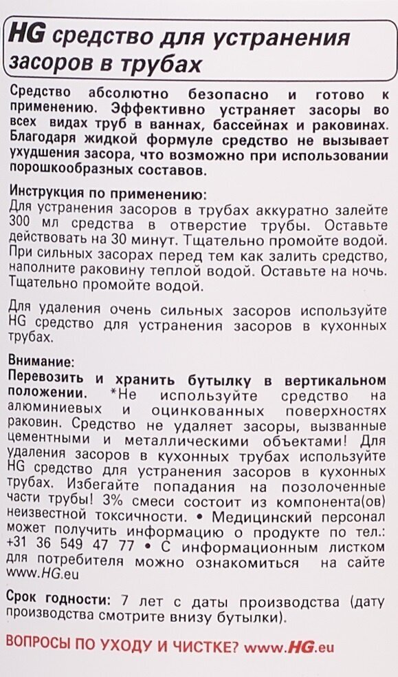 Средство для прочистки труб HG для устранения засоров в трубах, 1 л (139100161)