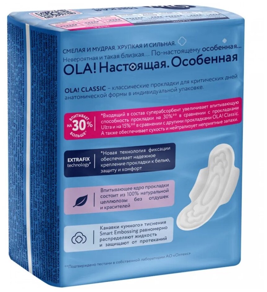 Ola! Прокладки Classic Wings Singles Normal Мягкая поверхность Soft, 4 капли, 20 штук в упаковке