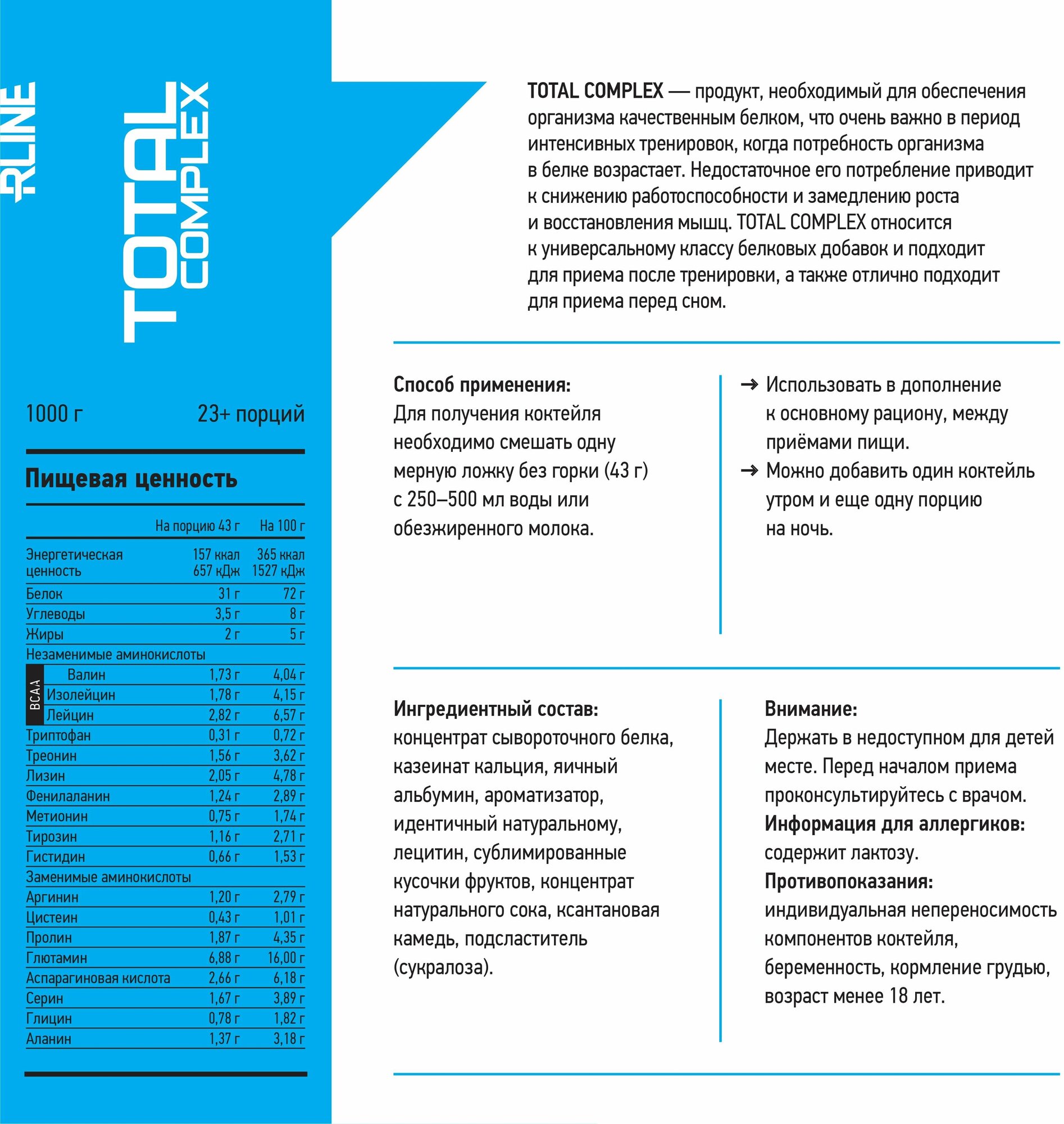 Протеин Rline TOTAL COMPLEX (Малина), 1800 г
