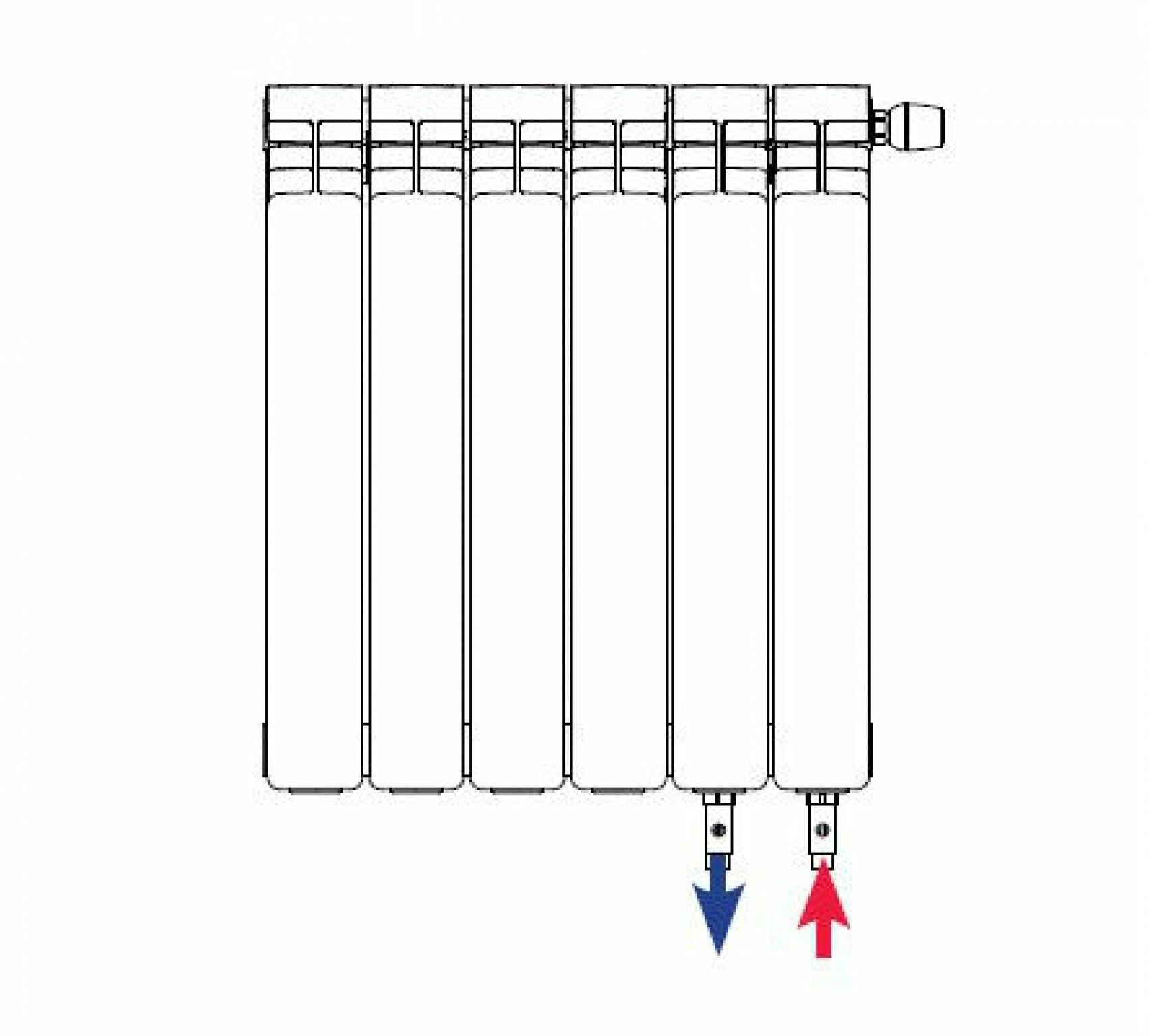 Радиатор биметаллический Rifar Base Ventil нижнее правое подключение 500 мм х 6 секций (R50006НПП)