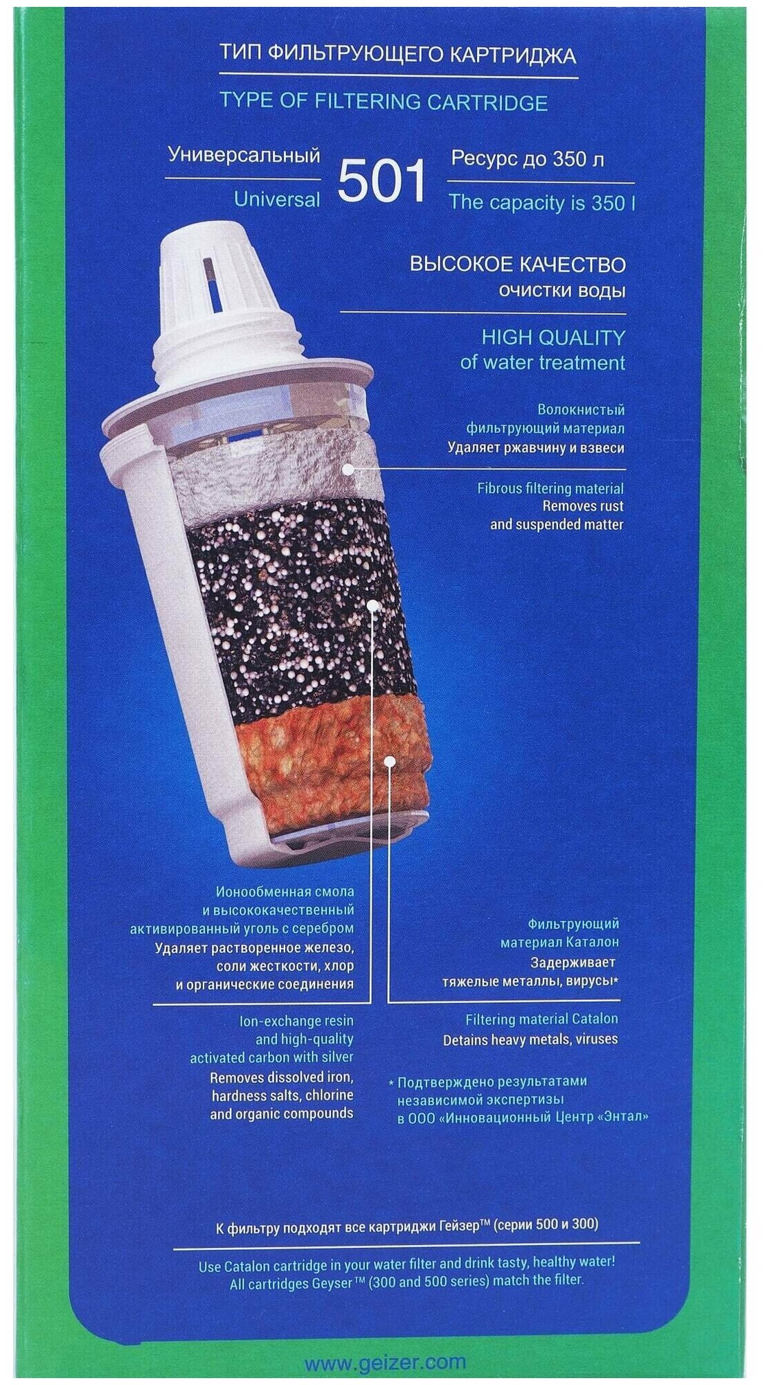 Фильтр-кувшин Гейзер Аквилон, улучшает вкус и цвет воды, а также устраняет неприятные запахи, 62042