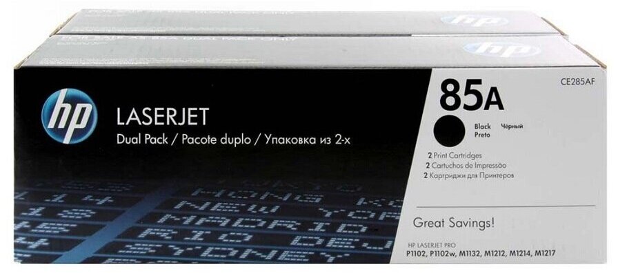 Картридж HP 85A LaserJet CE285AF с тонером в сдвоенной упаковке для LJ P1102/1102w