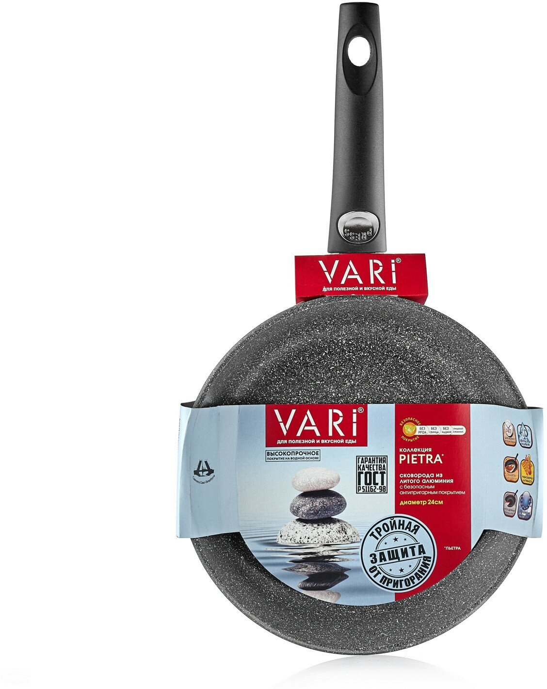 Сковорода VARI Pietra, 24см, без крышки, черный