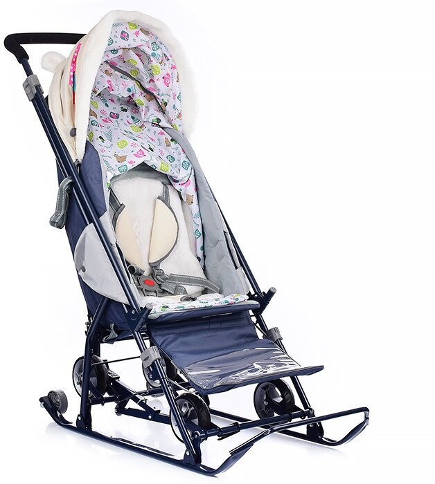 | Минусы: | С трудом удаётся поменять положение с санок на колёса. |