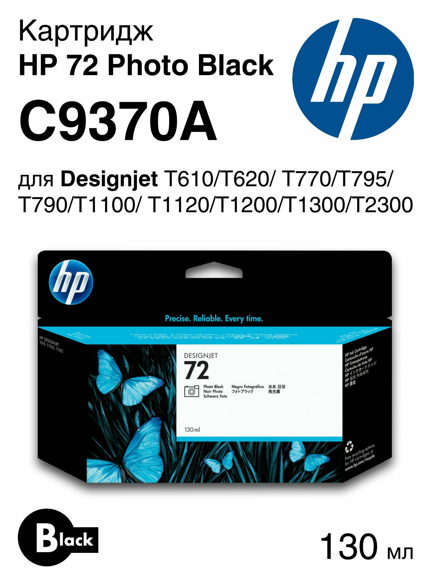 Картридж HP C9370A №72 Черный Фото для HP Designjet T610/T620/T770/T1100/T1200 (130 ml)