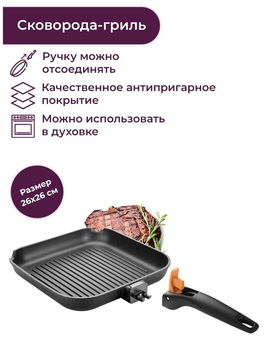 Сковорода-гриль Tescoma SmartClick 26x26см, съёмная ручка 605066.00
