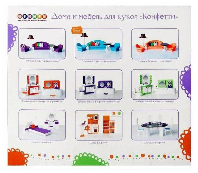 Дом для кукол / Кукольный домик с мебелью Конфети Огонек