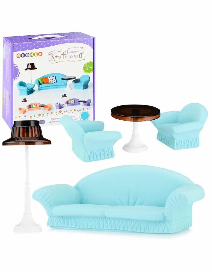 Набор мебели для кукол Огонек Гостиная, "Конфетти", бирюзовая (С-1579)