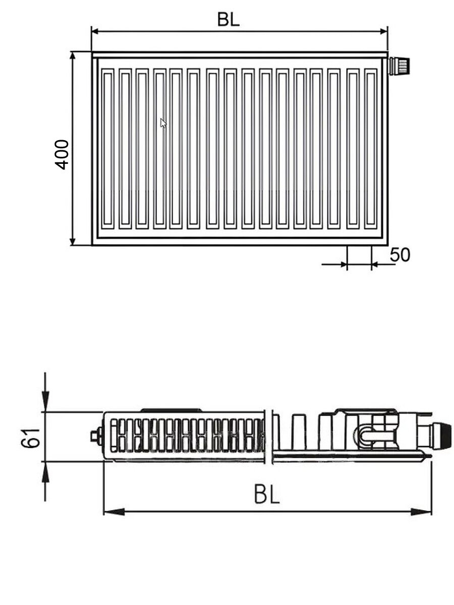 Радиатор стальной панельный Kermi Profil-V FTV 11 400/600 нижнее правое подключение 2xG3/4"