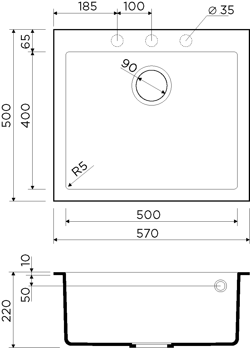 | Ширина мойки | 57 см |