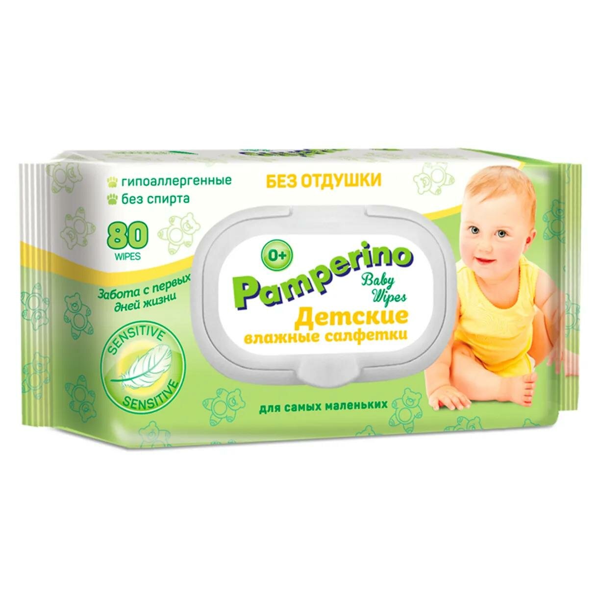 Pamperino №80 без отдушки детские влажные салфетки с пластиковым клапаном