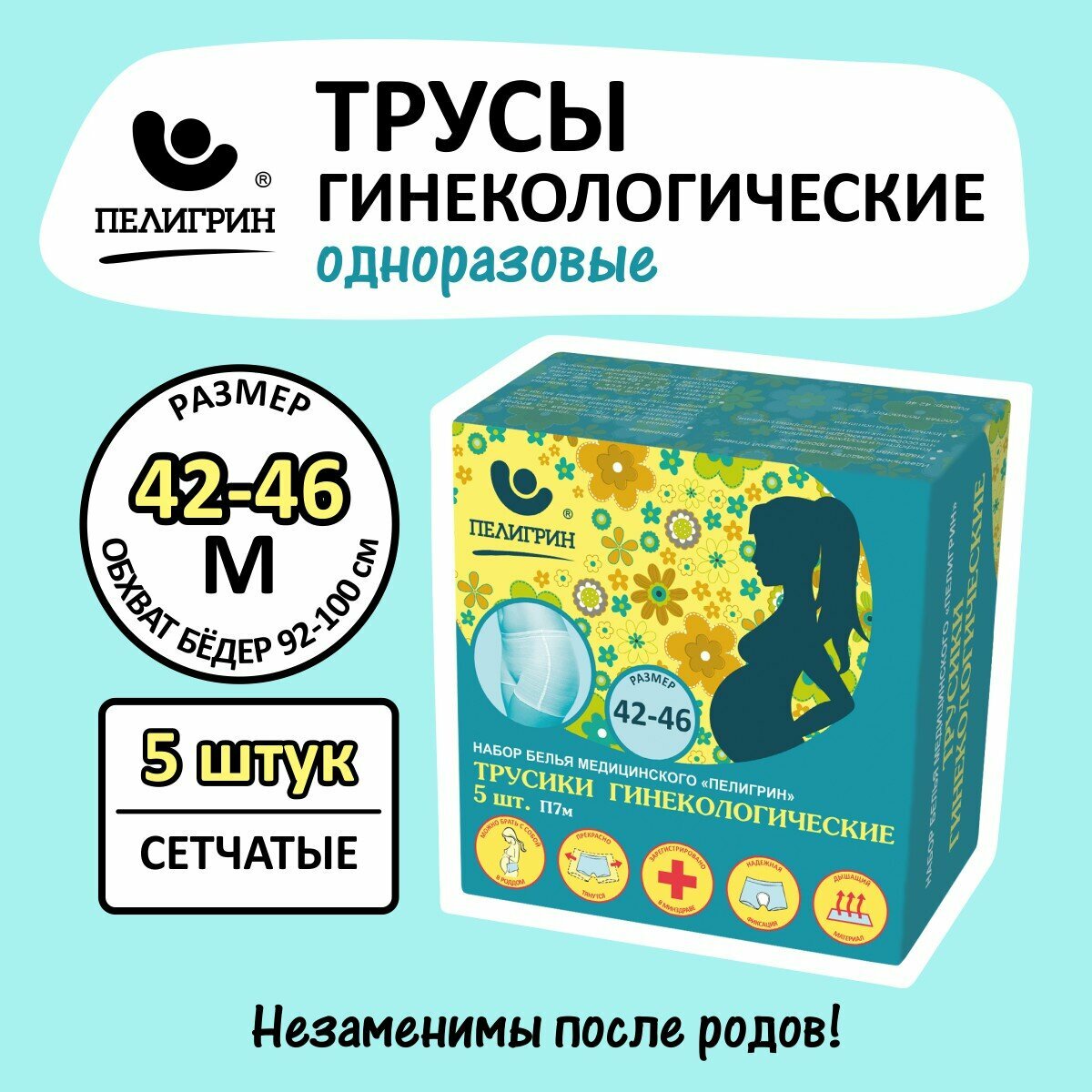 Трусы одноразовые гинекологические послеродовые Пелигрин р-р 42-46 М 5шт.