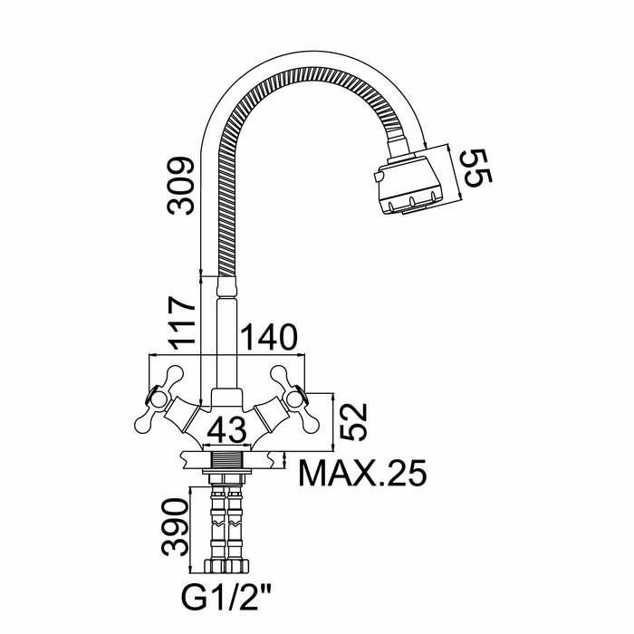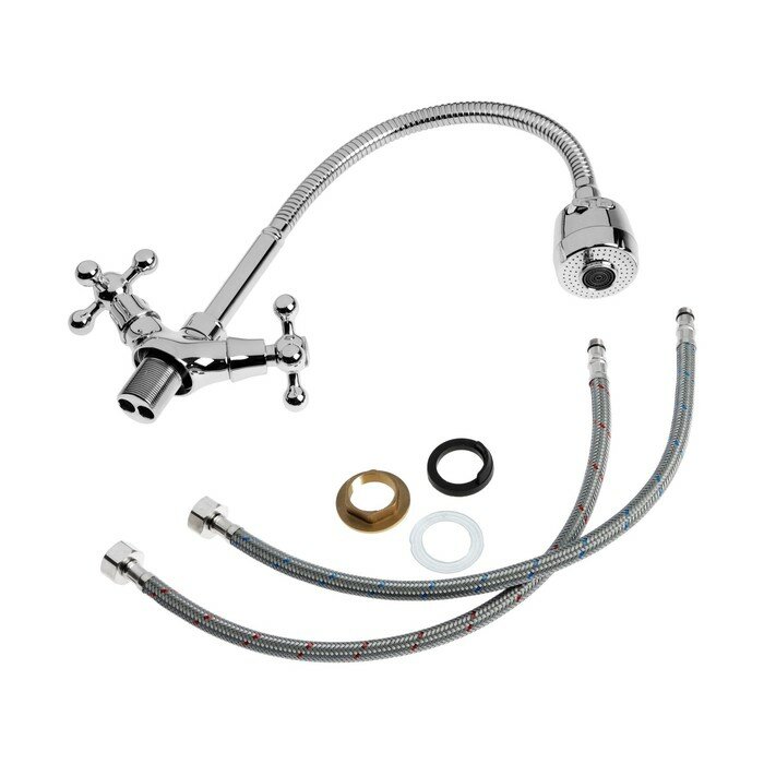 Смеситель кухня на гайке крест гибкий излив двухрежимный Accoona A4871
