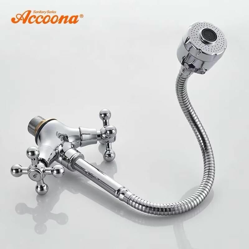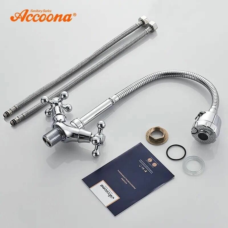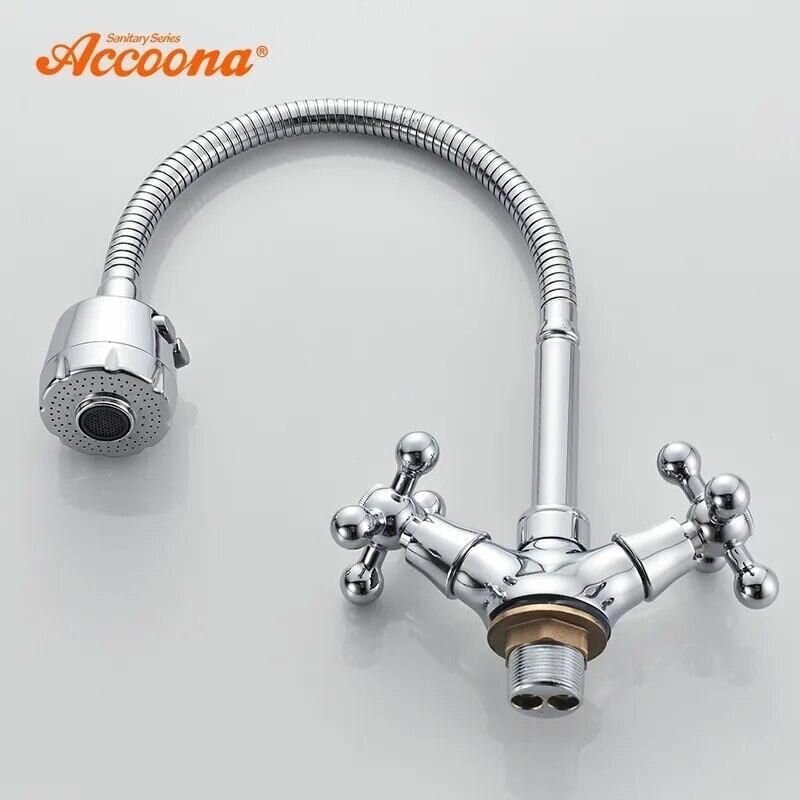 Купить Accoona Cмеситель для кухни Accoona A4871, двухвентильный, гибкий излив, силумин, хром