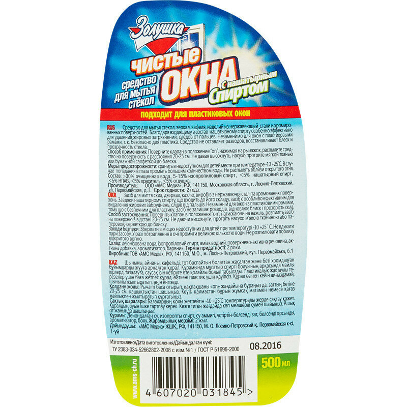 Спрей Золушка Чистые окна для мытья стекол с нашатырным спиртом, 500 мл