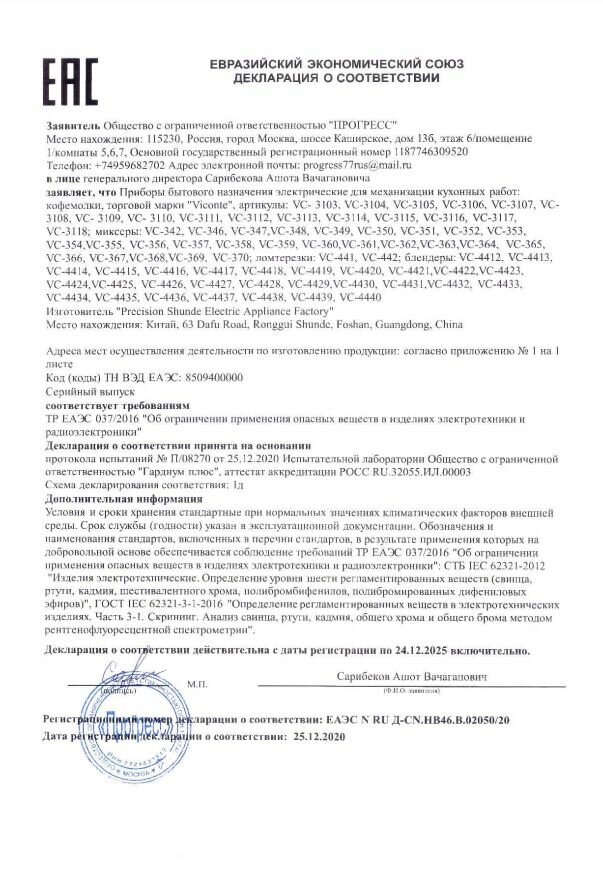 VC-349 миксер Viconte Patrice