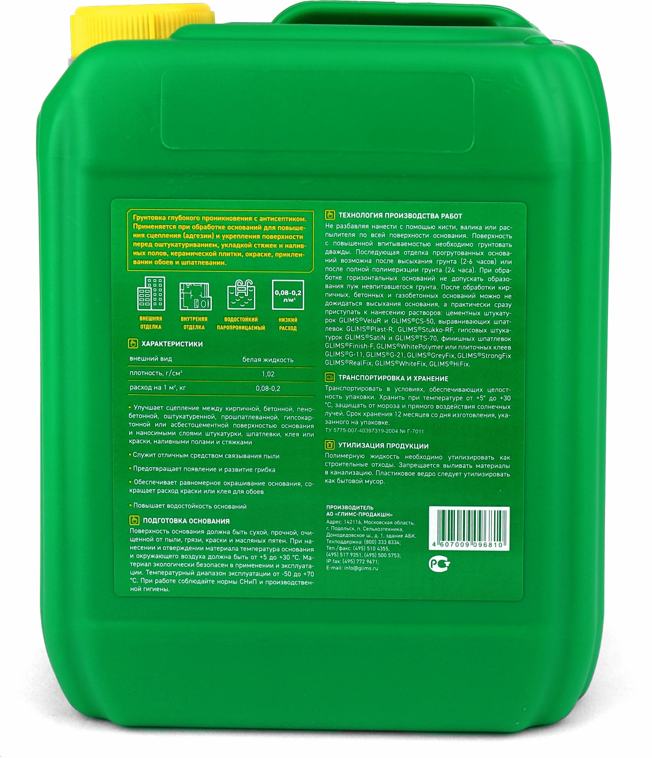 Грунтовка проникающая GLIMS PrimeГрунт 5 л интересное: