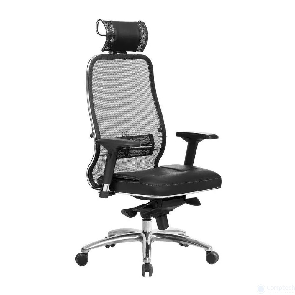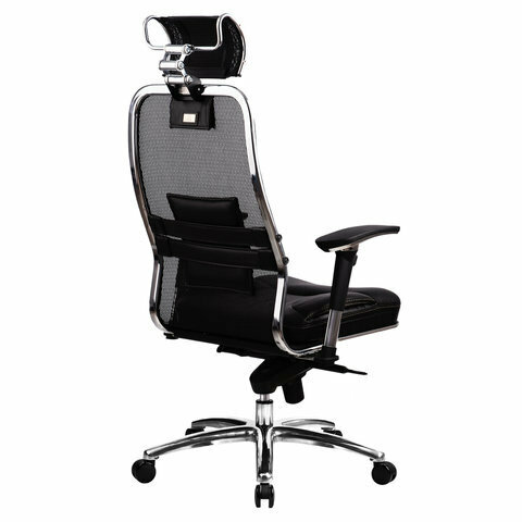 Кресло офисное метта "SAMURAI" SL-3, с подголовником, сверхпрочная ткань-сетка/кожа, черное интересное: