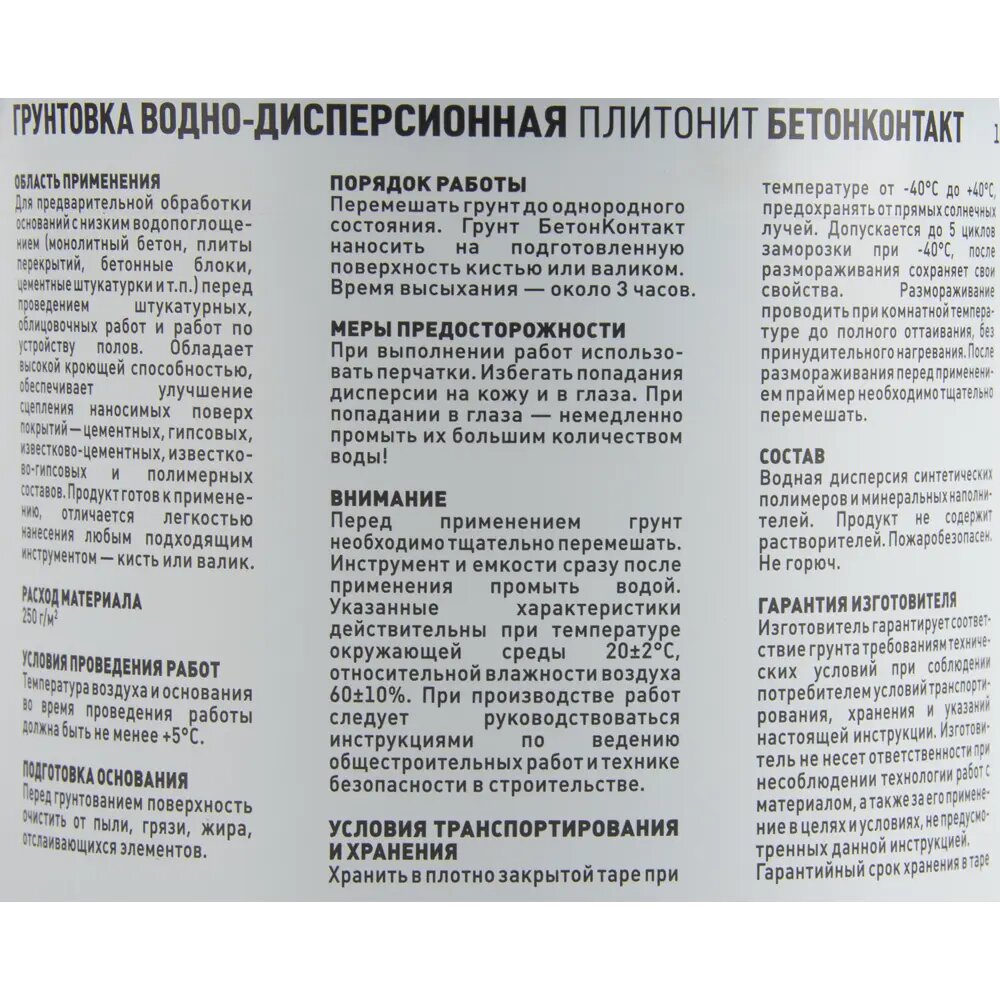 Плитонит Бетоконтакт праймер грунт адгезионный (15кг) / PLITONIT Бетонконтакт грунтовка адгезионная белая (15кг)