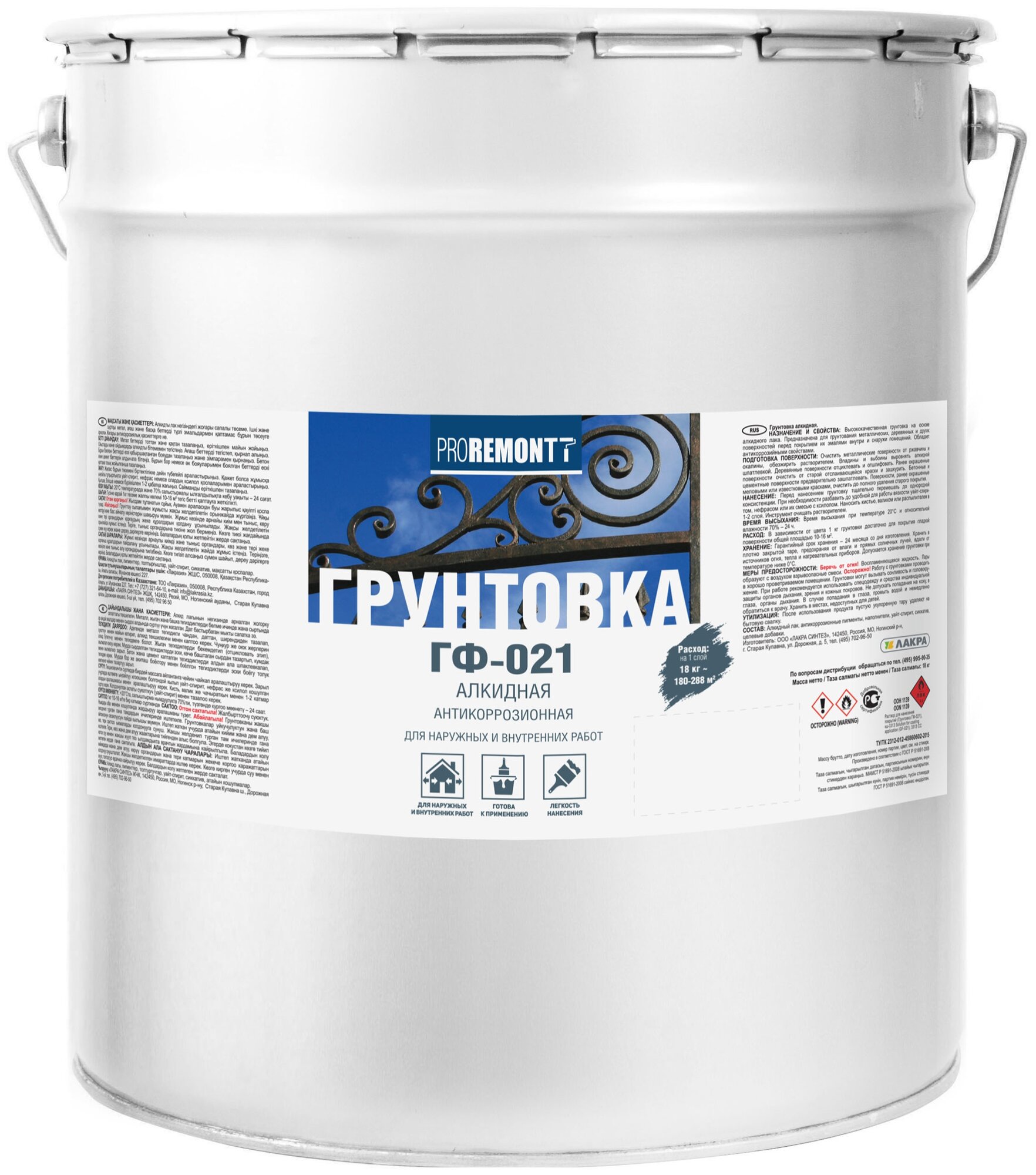 Купить Грунт по металлу ГФ-021 Лакра PROREMONTT серый, 18кг