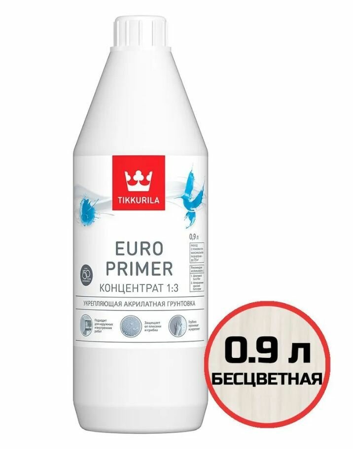 Tikkurila Euro Primer, укрепляющая грунтовка глубокого проникновения с добавками против грибков и плесени. Концентрат 1:3, 0,9л