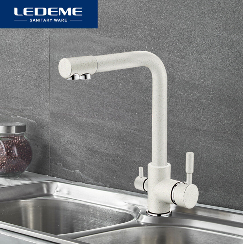Смеситель для кухни со встроенным краном под фильтр питьевой воды Ledeme R L4055W-3 молочный