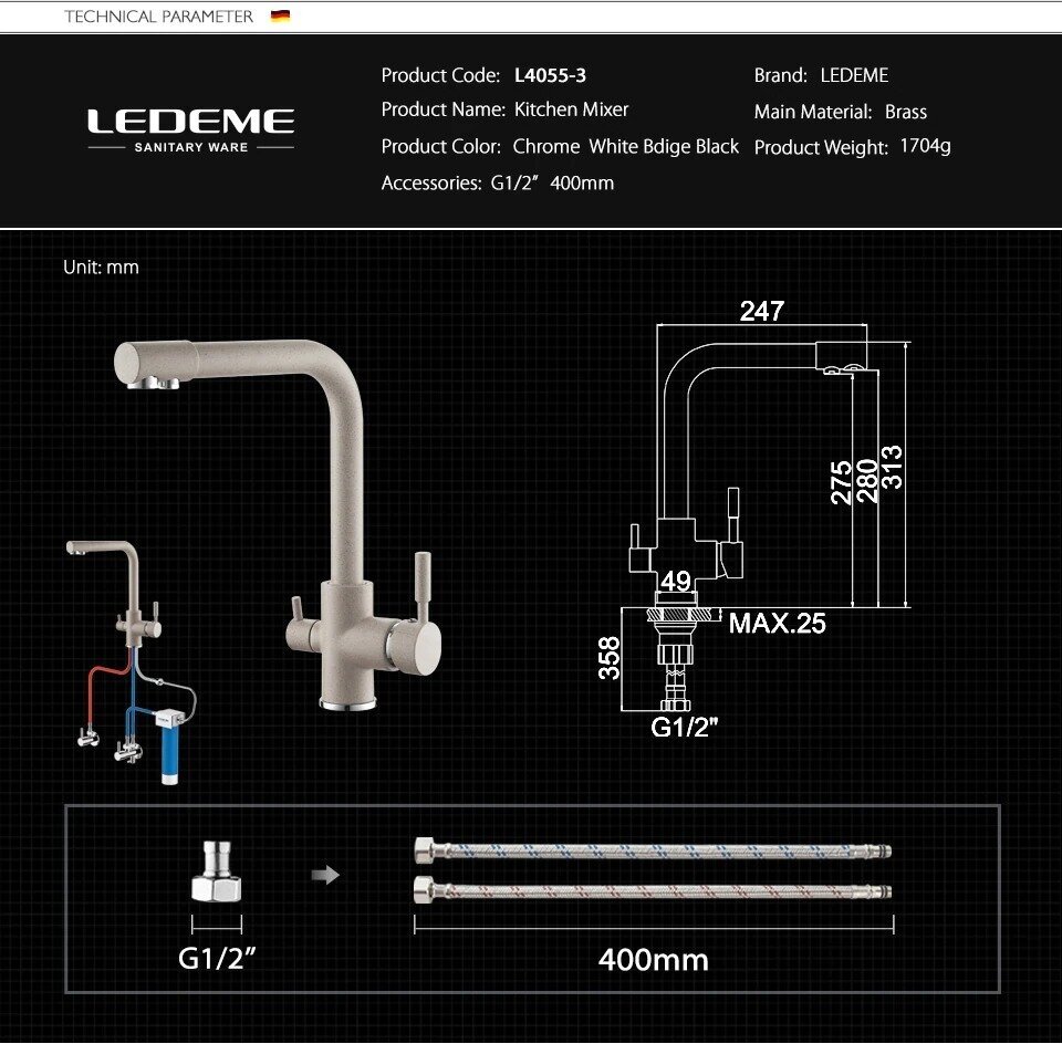 Смеситель LEDEME L4055B-3 для фильтра
